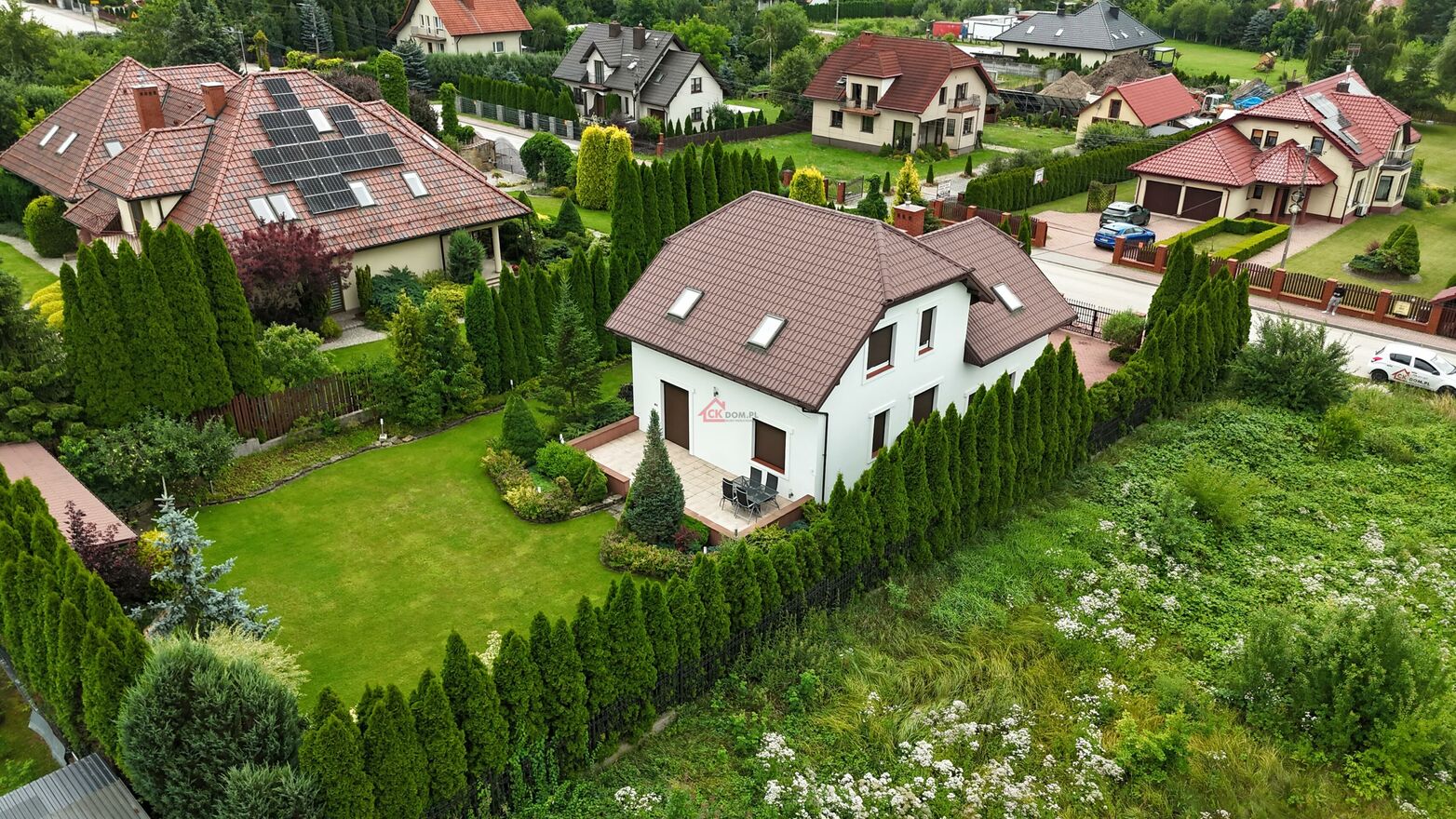 działka o pow. 900 m, pięknie utrzymany ogród idealny do relaksu i rekreacji, spokojna okolica, niska zabudowa, blisko lasu.