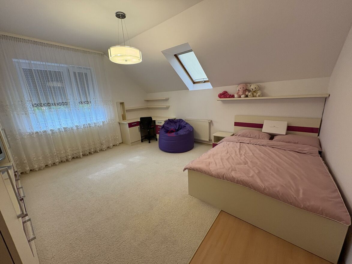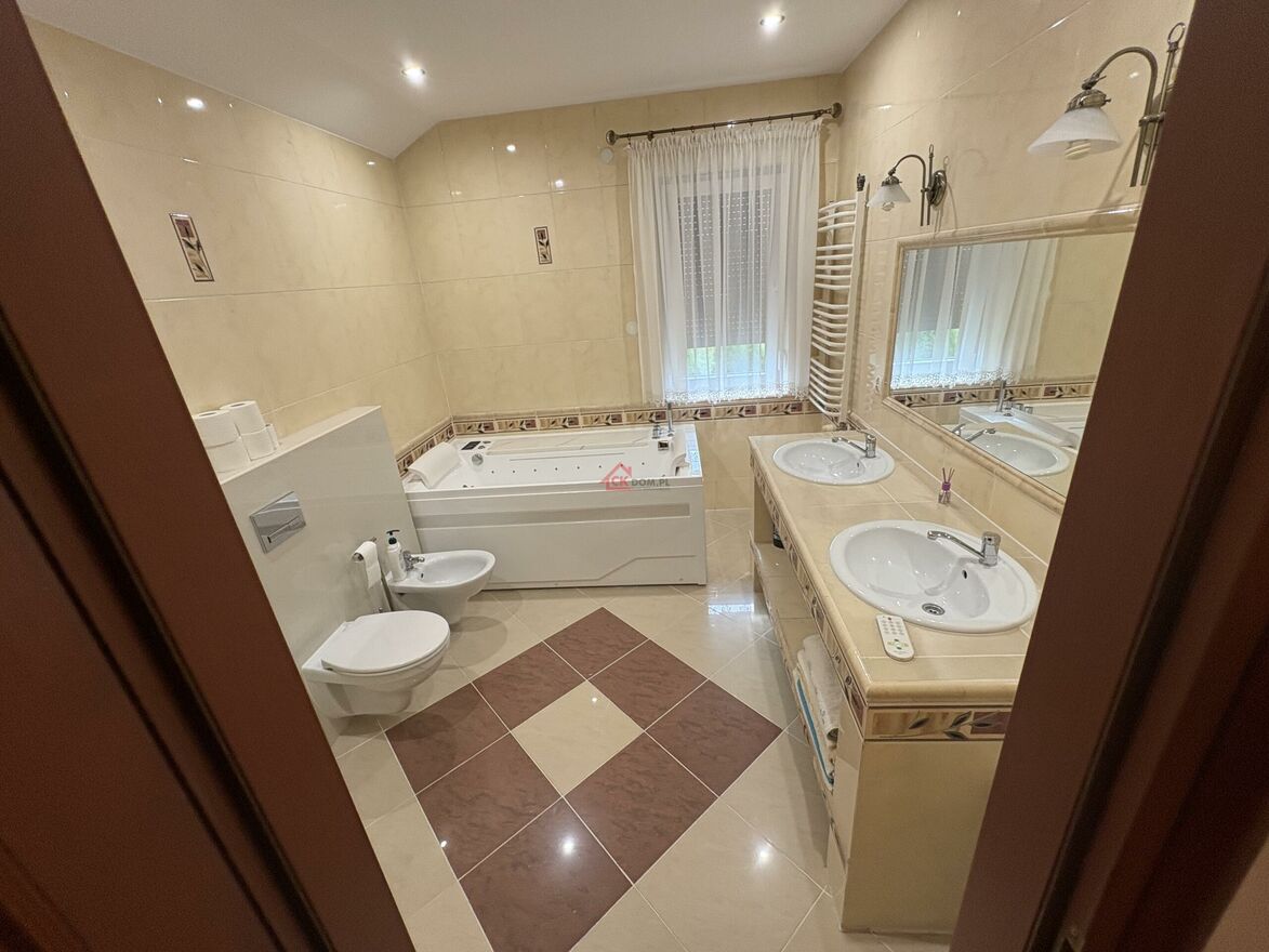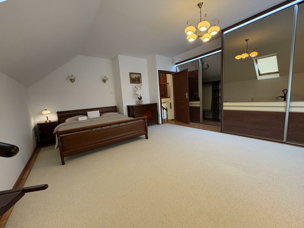 3 ustawne sypialnie, przestronny salon z jadalnią i kuchnia, łazienka z wanną z hydromasażem oraz prysznicem . Garaż w bryle budynku, strych z możliwością adaptacji, liczne garderoby i pomieszczenia gospodarcze, nowoczesne i estetyczne wykończenie wnętrz.
