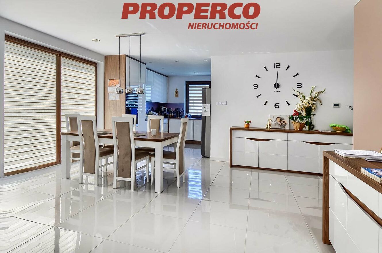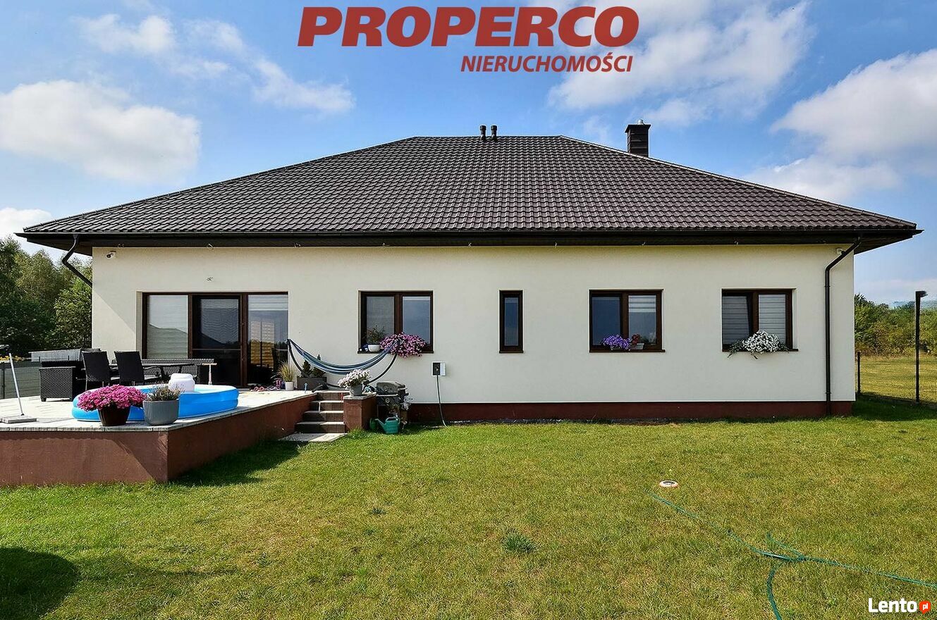 Na sprzedaż 5 pokojowy nowoczesny, energooszczędny dom o pow. użytkowej 152,55 m2 (pow. zabudowy 254,41 m2, pow. całkowita z tarasem 261,39 m2) zlokalizowany na działce o pow. 1279 m2, w miejscowości Piaseczna Górka w gminie Morawica.Dom oddany do użytku w styczniu 2023 r, wybudowany w energooszczędnej technologii z pustaka ceramicznego Porotherm25, okna trzyszybowe. Dach kryty blachodachówką. Ogrzewanie podłogowe piecem gazowym , ocieplenie ścian zewnętrznych - styropian 20 cm.
